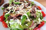 Lettuce, tomato, carrots, red onions, tomatoes, sliced egg, topped with our homemade cheesesteak. Make it The Works for an additional charge.